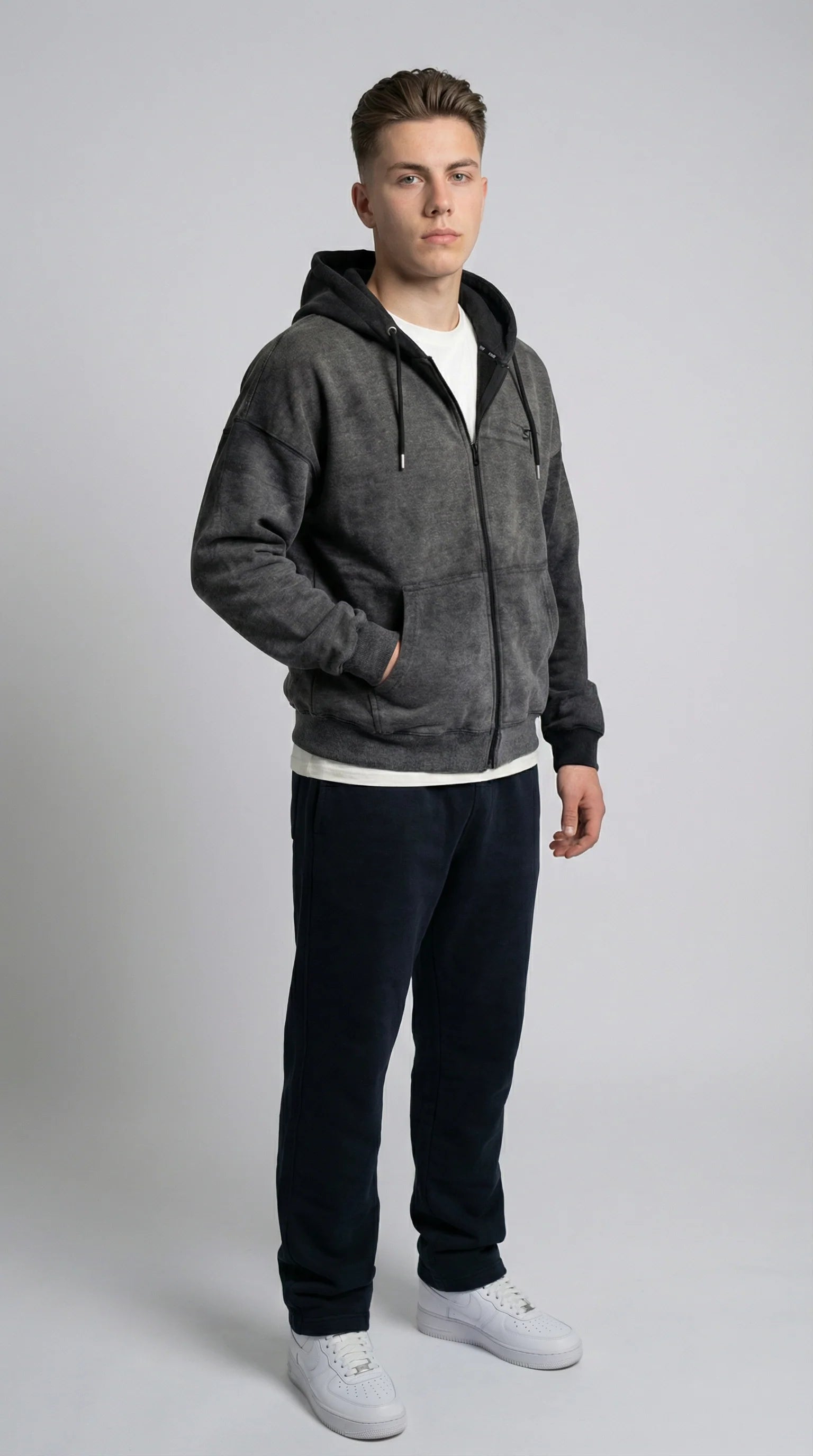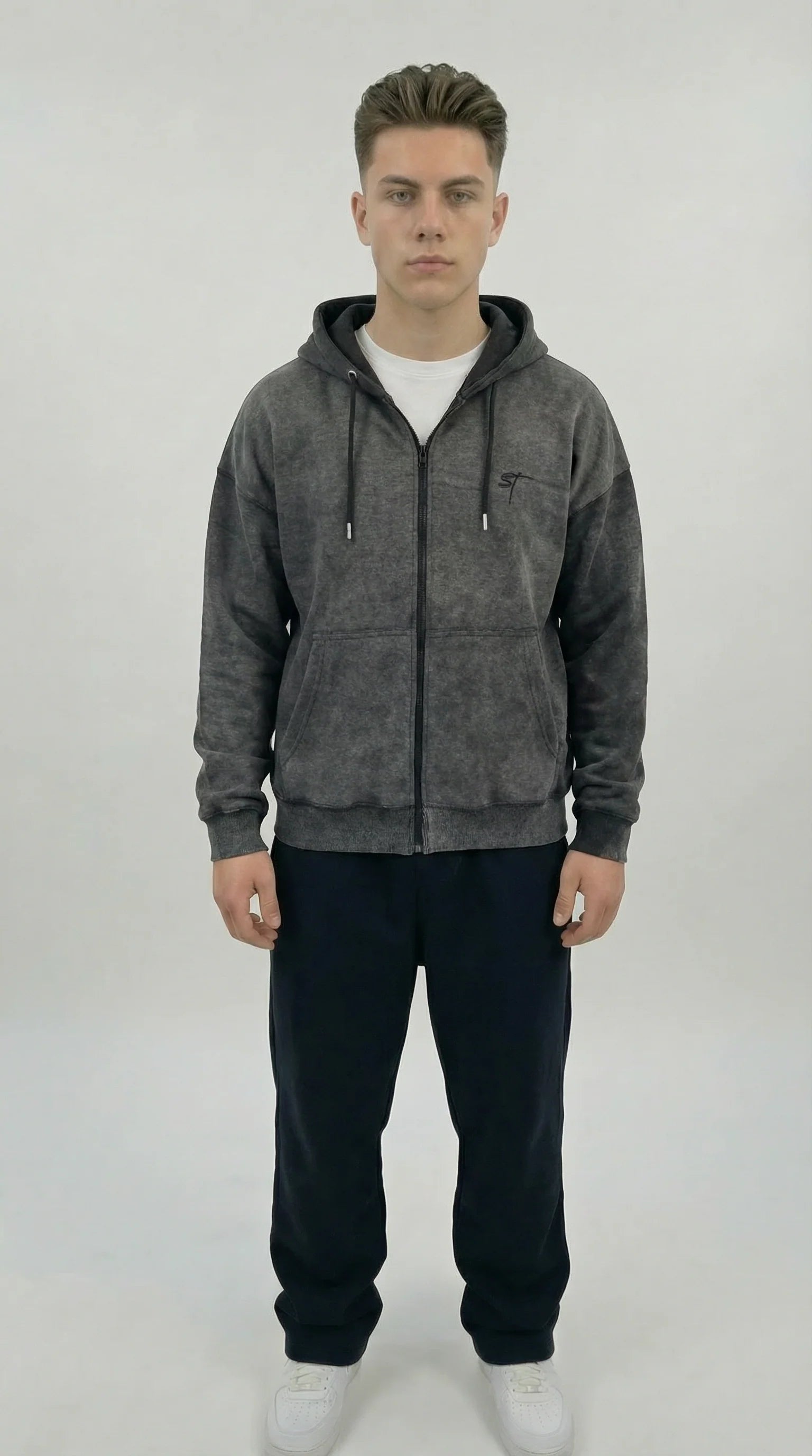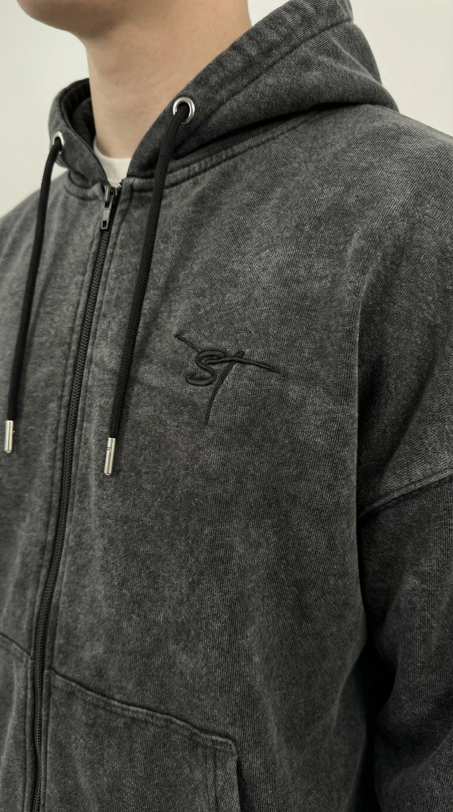 STSL Zip Hoodie – Washed Black